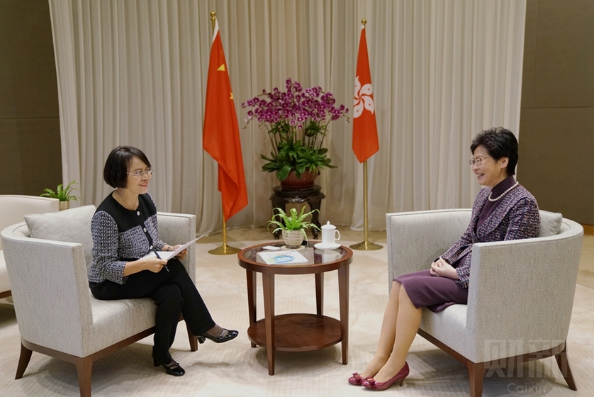 2017年10月24日,香港,财新传媒与财新智库创办人胡舒立对话香港首位女特首林郑月娥。图/财新记者 梁莹菲