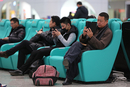 2017年12月3日,大连火车北站候车室现超豪华座椅,这些座椅既可以给手机充电,又可以给人按摩。图/视觉中国
