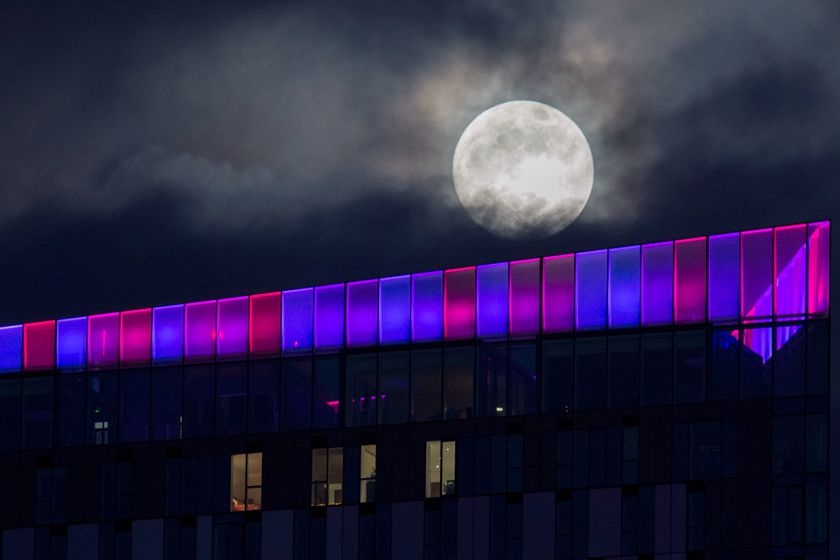 当地时间2018年1月30日,英国伦敦,当地现满月景观。图/视觉中国