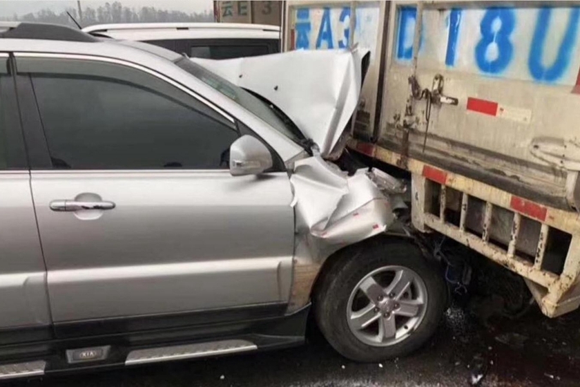 2018年2月5日早晨,云南昆楚高速公路碧鸡关路段发生14起交通事故,53辆车相撞,80余人滞留路面,3人受轻微伤。事故发生后,有4名驾乘人员攀越桥梁想到对向车道,不幸坠落身亡。受最近几天雨雪天气影响,云南省多条高速路面湿滑结冰,导致交通事故。图/东方IC