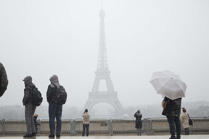 法国巴黎降下罕见大雪 埃菲尔铁塔临时关闭