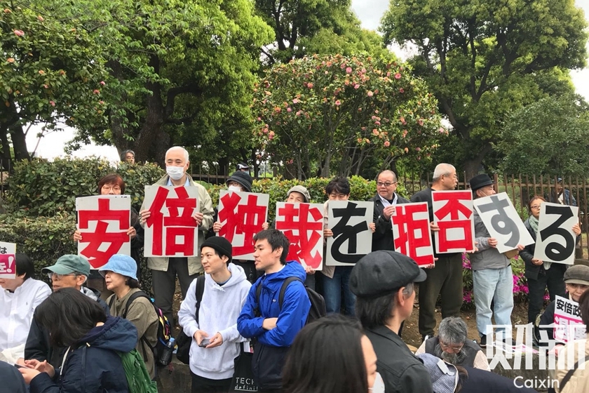 在东京国会大厦前集会抗议的日本群众。图/财新记者 陈立雄