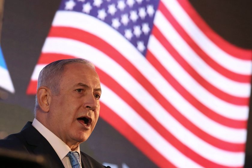 以色列总理内塔尼亚胡、美国财政部长史蒂文·姆努钦、美国总统特朗普女儿伊万卡和白宫高级顾问库什纳在开馆典礼上。图/视觉中国