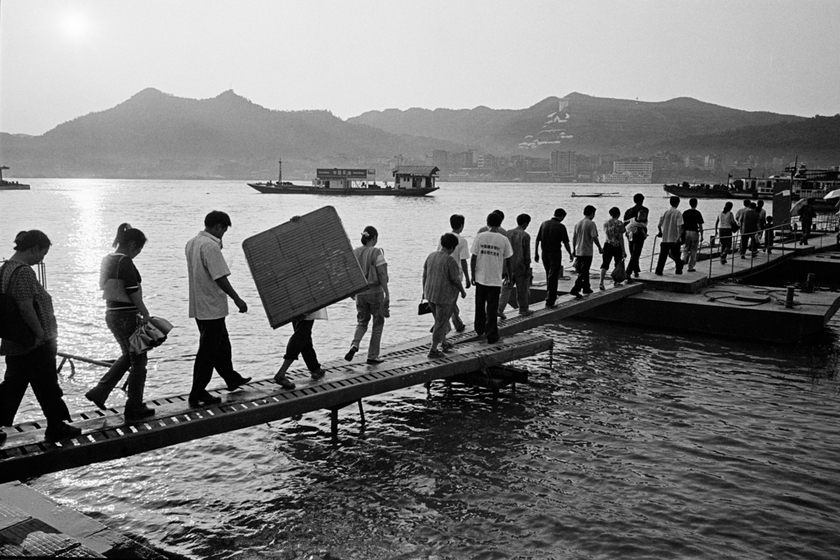 2002年8月22日,重庆丰都新城去老城的码头。新城尚未建好,老城的工作还要继续,所以每到上下班时间,新旧两岸,人声鼎沸。 图/王景春