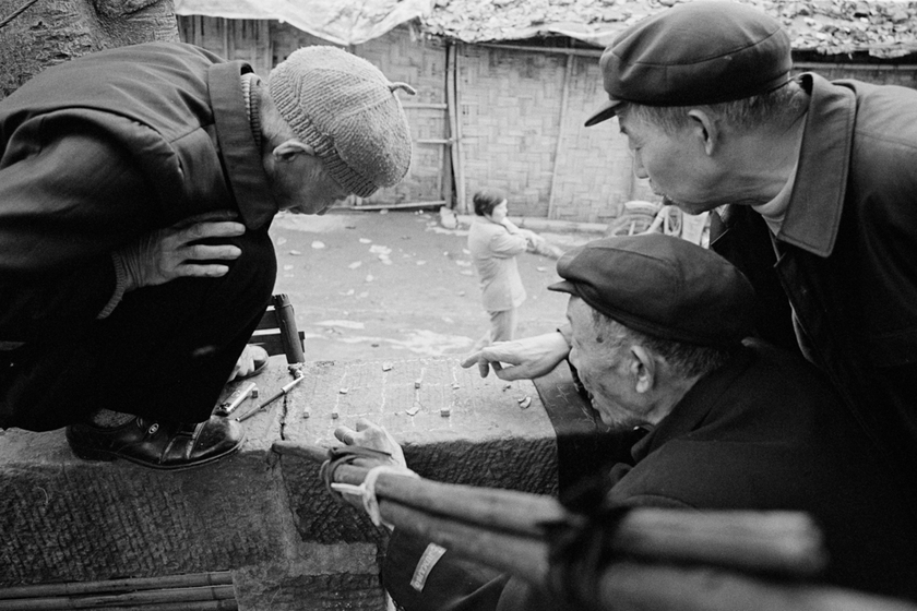 2002年10月4日,重庆云阳,几位老人聚在一起用石子下棋。 图/王景春