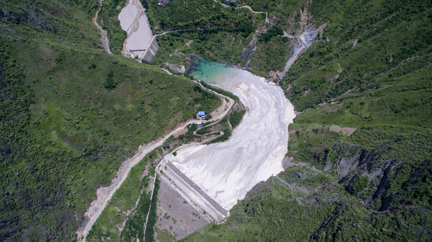 2016年7月9日,位于金沙江畔的云南省昭通市永善县大兴镇金沙村铅锌矿尾矿坝。这样的矿山尾矿坝沿金沙江有上千个,因金沙江地质活跃,这些尾矿坝都是潜在的危险。 图/陈杰
