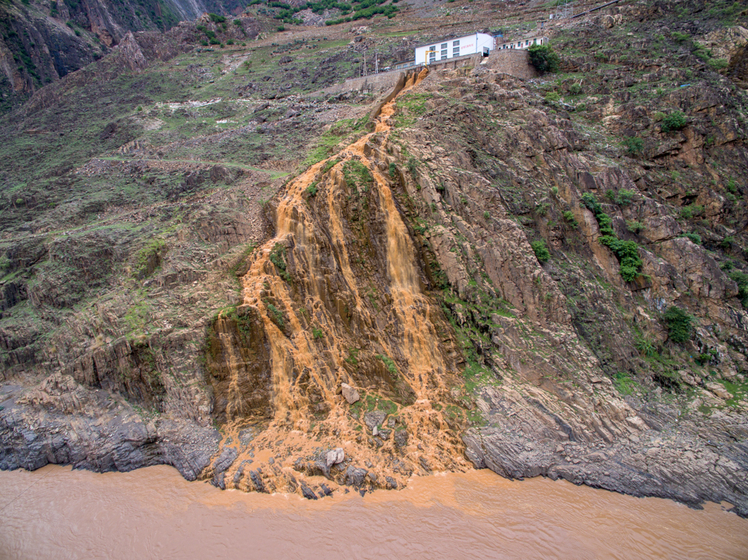 2015年7月5日,四川省会东县淌塘镇一矿业公司将红色的选矿废水通过电厂尾水排放到金沙江中。 图/陈杰
