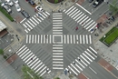 2018年8月19日,俯瞰北京市首个全向十字路口。该路口位于石景山区鲁谷西街与政达路交叉处,当人行道的绿灯亮起,十字路口所有方向的机动车道指示灯都会变为红灯。图/视觉中国