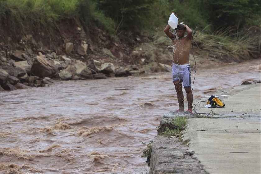 当地时间2018年10月7日,洪都拉斯特古西加尔巴,冲澡的男人。暴雨导致洪水泛滥,造成至少4人死亡,2人失踪,数百人被疏散。图/视觉中国