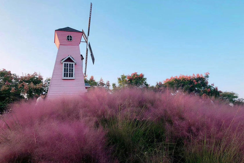 2018年10月14日,杭州,杭州滨江江边公园的粉黛乱子草迎来了盛花期,并迅速成为“网红”。原本比较冷清的公园迎来众多游人前来拍照,然而许多人直接踏入花田,还有人直接躺在粉黛乱子草里拍照。原本笔直站立的“粉黛”被一片一片的踩坏压倒,绿化部门的人员只能提前将盛开了两天的粉黛乱子草收割。图/视觉中国