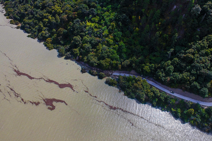 2018年10月18日,通往西藏林芝米林县加拉村的道路被水淹没。西藏自治区林芝市官方18日通报雅鲁藏布江米林县加拉村段堰塞湖灾情及抗灾救灾情况。截至18日13时许,救灾人员对事发点沿江上下游人员进行疏散撤离,已疏散撤离6000余人。10月17日凌晨5时许,西藏林芝市米林县派镇加拉村下游7公里处无人区,雅鲁藏布江左岸发生山体滑坡,造成雅鲁藏布江断流、水位上涨,形成堰塞湖。图/视觉中国