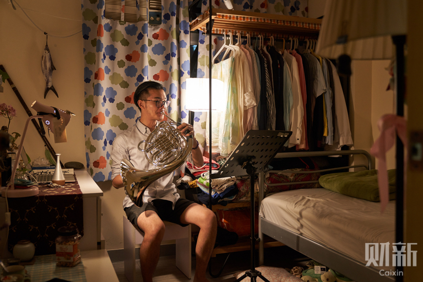 【邱杰瑞 租金:3500港币/月 面积:40平方米 居住人数:2人】邱杰瑞觉得自己特别幸运,刚毕业就进入城市当代舞蹈团工作,因家在内地,上班第二天舞团就为他安排了宿舍,租金远低于一般水平。较为宽敞的住所让他有空间继续自己的爱好,每到下班便练习吹奏箫、圆号和牧童笛,有时也写书法和做手工。