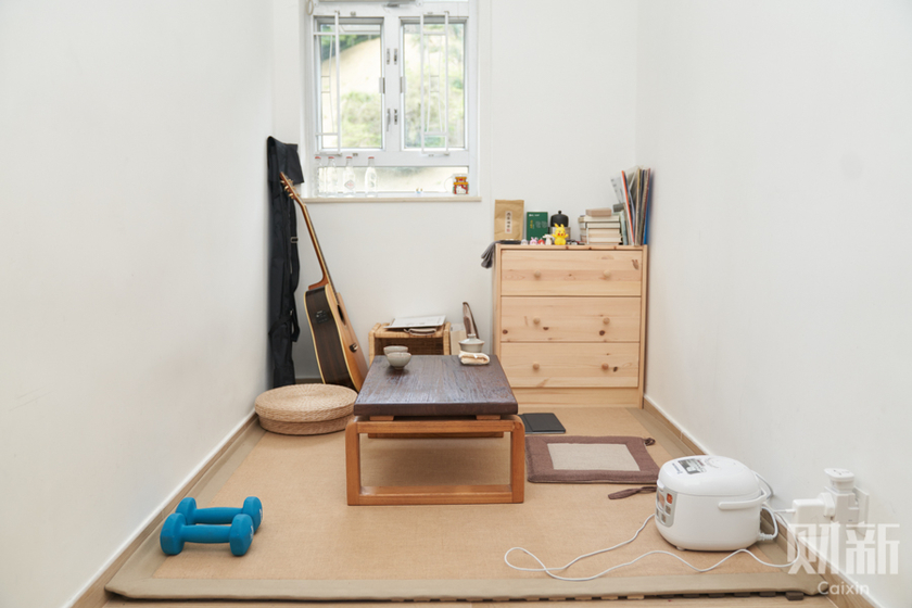 Jovy和室友对生活的要求并未因为居住空间太小而降低,反而花尽心思让这个地方成为下班后可供放松的场所,一张格外有仪式感的小茶台占据客厅正中间,古董唱片机在冰箱上面,用来播放Jovy心爱的Pink Floyd乐队的歌曲。