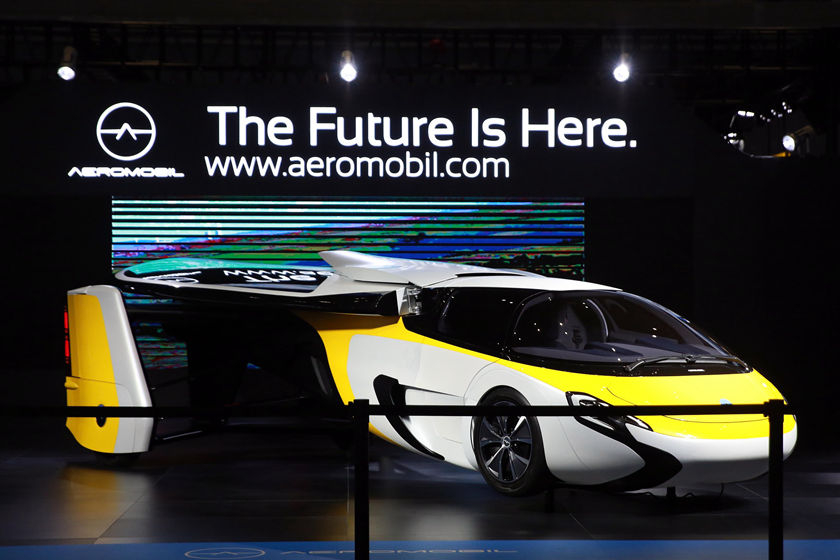 2018年11月5日,首届中国国际进口博览会在上海正式开幕,来自世界各地的高科技智能展品亮相本次展会。图为来自斯洛伐克的飞行汽车AeroMobil。该车只需三分钟就能变成飞机,汽车行驶距离约100公里,飞行时最大巡航距离为750公里。图/视觉中国