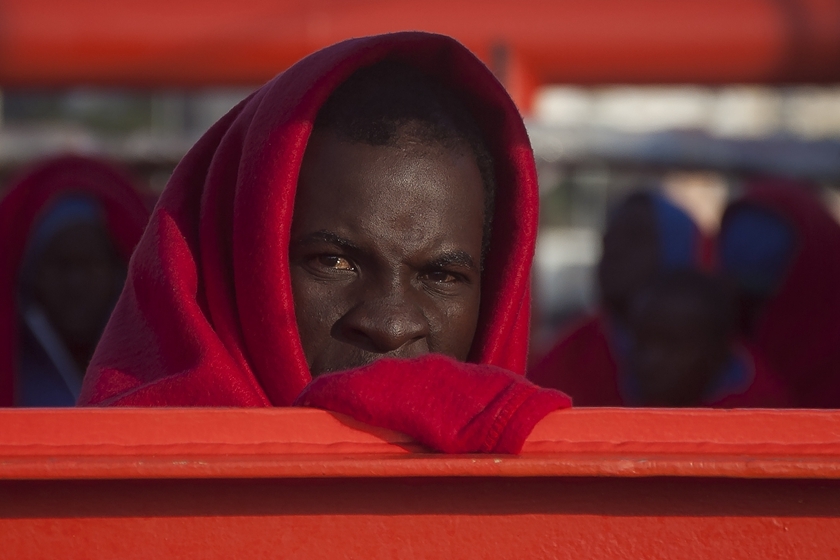 当地时间2018年11月13日,西班牙马拉加,一位来到马拉加港后的移民。西班牙海上救援队在地中海营救了176名移民,并将他们带到马拉加港,在那里移民得到了西班牙红十字会的帮助。图/视觉中国