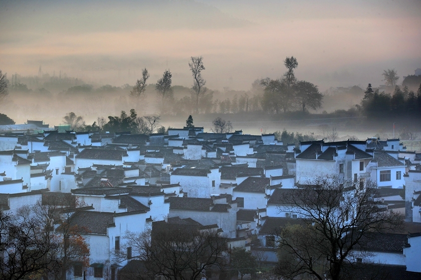 2018年11月26日,安徽黄山,早晨,黟县卢村平流雾。图/视觉中国
