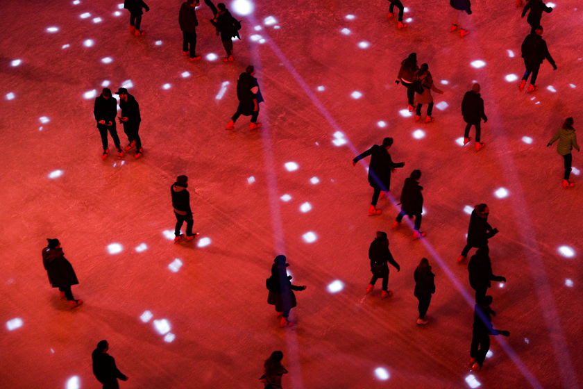 当地时间2018年12月18日,法国巴黎,人们在巴黎大皇宫内滑冰。巴黎大皇宫滑冰场在圣诞期间对公众开放。图/视觉中国
