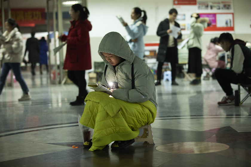 2018年12月19日,安徽阜阳师范学院西湖校区,即将参加考研的学生在看书。2019年全国硕士研究生招生考试将于12月22日开考,考研学子们做最后的冲刺。图/视觉中国