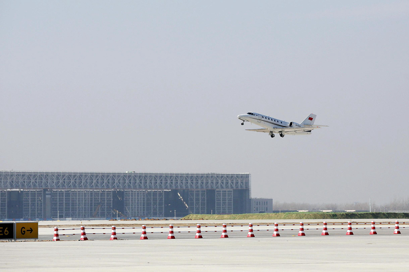 2019年1月22日,北京,首架校验飞机掠过北京大兴国际机场上空。图/视觉中国