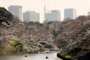 当地时间2019年3月26日,日本东京,千鸟渊公园樱花盛开,游人划船观赏。图/东方IC