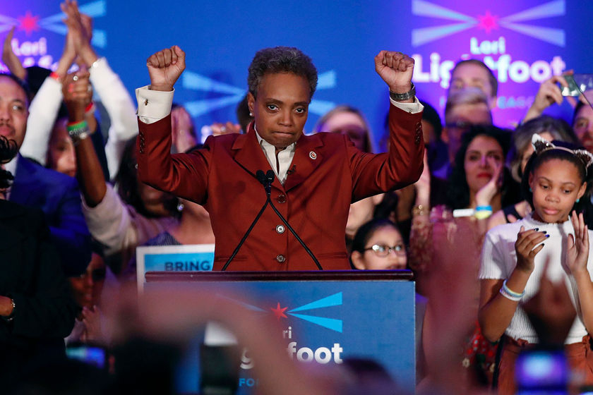 当地时间2019年4月2日,美国芝加哥,市长候选人洛丽·莱特福特击败对手托妮·普里克温克尔,成为芝加哥历史上首位非裔女性市长,她也是芝加哥首位公开同性恋身份的市长。当选后,莱特福特发表讲话称:“今天你们(选民)做的不仅仅是创造历史,而是创造了一个变革运动。”图/视觉中国
