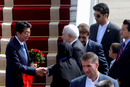 当地时间2019年6月12日,伊朗德黑兰,日本首相安倍晋三出席伊朗总统鲁哈尼在萨德阿巴德王宫举行的欢迎仪式,安倍晋三同伊朗总统鲁哈尼握手。安倍晋三在访问伊朗时表示,日本愿为缓解中东地区紧张局势发挥作用。图/视觉中国