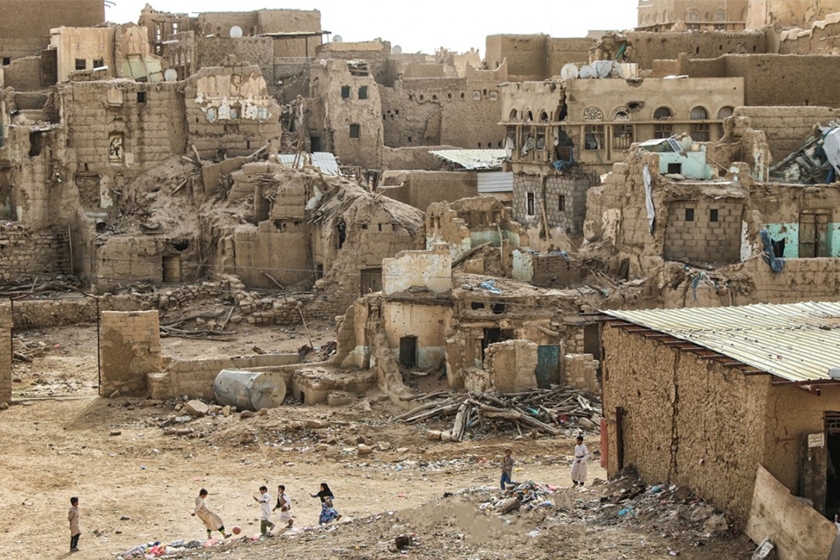 也门萨达,一群孩子在一片损毁的房屋前踢足球。自2006年以来,这个北部省份经历了几次暴力冲突,遭到巨大破坏。6月20日是世界难民日,难民问题依然是国际社会的一大顽疾。图/红十字国际委员会