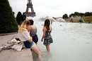 当地时间2019年6月24日,法国巴黎,法国多地迎高温天气。巴黎市民在埃菲尔铁塔对面的德洛卡德洛广场喷泉水池中乘凉。据报道,由于大西洋上空肆虐的风暴和欧洲中东部的高压,一股热空气从非洲向北席卷欧洲。西欧和中欧大部分地区都会出现潜在的危险热浪。包括巴黎在内的多个城市在接下来的一周时间内将遭遇持续高温,夜晚温度也不会有大幅缓解。图/视觉中国