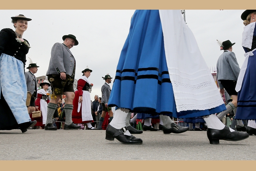 当地时间2019年9月22日,德国慕尼黑,民众穿古典服饰参加慕尼黑啤酒节。第186届啤酒节于9月21日至10月6日向公众开放。图/视觉中国