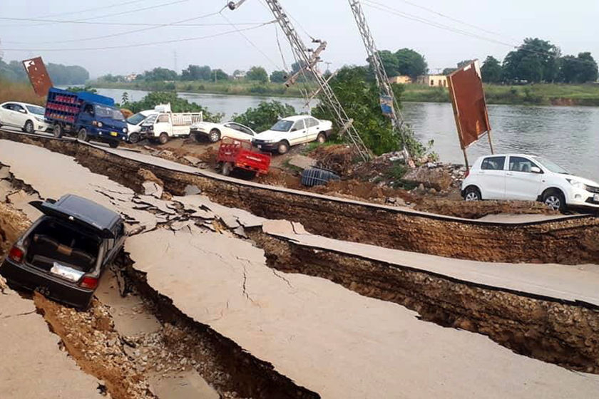 当地时间2019年9月24日,巴基斯坦东部杰赫勒姆发生5.8级地震,部分地区的道路出现巨大裂缝。据巴基斯坦媒体报道,此次地震已经导致20余人死亡,超过300人受伤。图/IC photo
