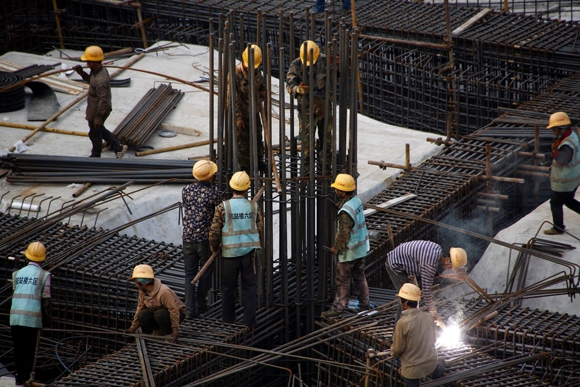 2018年8月30日,北京,在建大兴新机场内的工人在施工。图/视觉中国