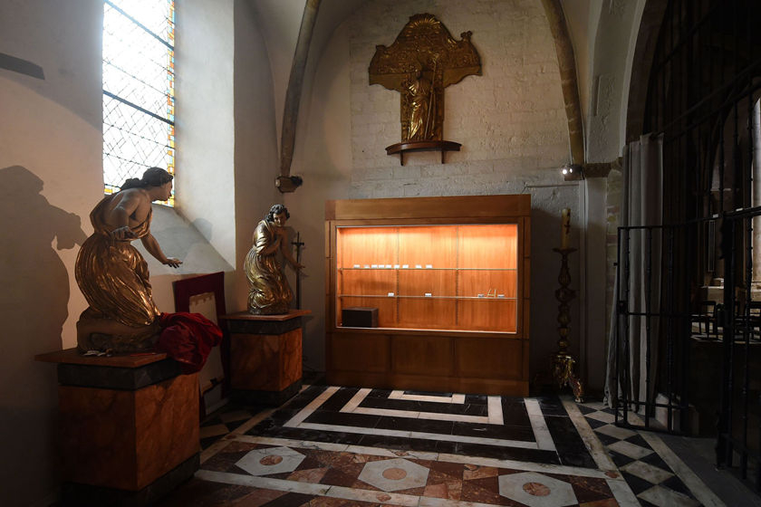 当地时间2019年11月4日,根据奥洛龙-圣玛丽市政厅初步盘点,损失的物品包括十字架、圣杯等银器,以及弗朗索瓦一世捐赠的礼拜服等收藏品。奥洛龙-圣玛丽市市长艾尔维∙卢克贝里表示,丢失的一些十六世纪藏品独一无二,历史文物无价,损失难以估量。图/视觉中国
