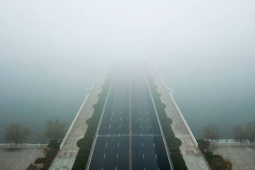 2019年12月9日,山东东营,城区内一座桥梁被大雾笼罩着。交通运输部发布路况信息:截至12月10日7时45分,受大雾影响,河北、辽宁、江苏、河南、湖北、四川境内共计 57 条高速66个路段道路封闭,其中河北境内23条高速30个路段,辽宁境内5条高速5个路段,江苏境内3条高速3个路段,河南境内14条高速15个路段,湖北境内6条高速7个路段,四川境内6条高速6个路段。图/视觉中国