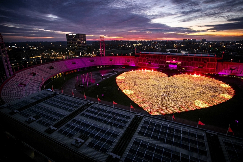 当地时间2019年12月29日,荷兰阿姆斯特丹,荷兰KWF抗癌组织在阿姆斯特丹奥林匹克体育场点燃了数千盏灯笼,呼吁民众关注癌症病人。