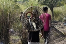当地时间2020年1月14日,印度阿萨姆邦古瓦哈蒂郊区,一名男子带着他的传统捕鱼设备,在去参加社区捕鱼的路上。