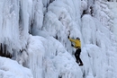 当地时间2020年2月6日,韩国江原道,当地寒流来袭,攀岩爱好者攀登人造冰瀑布。