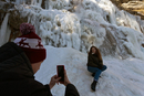 克里米亚山区现冰瀑奇观 引游人观赏拍照