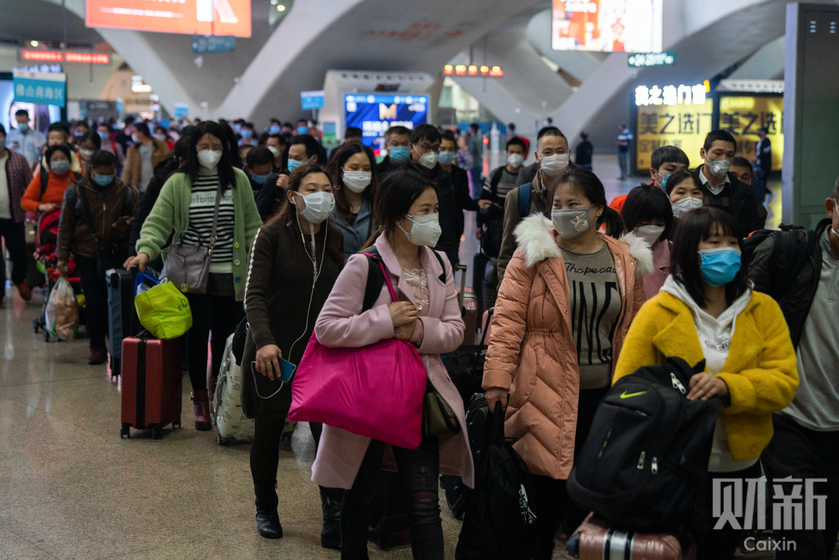 - 2020年2月25日,一列搭载了近六百名外来务工的列车从成都开出,于晚上八点26分抵达广州,据现场工作人员介绍,这些返程人员是来自佛山6、7家企业的老员工。近日,为了让各地企业有序复工,多地政府积极协调,开通专列、专车帮助务工人员返岗。 图/财新记者 梁莹菲