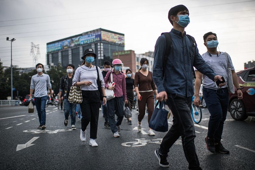 2020年2月27日,广东广州,各地逐步开始复工,选择步行的广州上班族。疫情期间,不少专家、多地政府办公厅印发的防控工作指南都对上下班途中如何防控进行了指导,建议尽量不乘坐地铁和公交,可选择共享单车或私家车等工具。图/IC photo