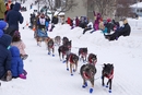 美国“狗拉雪橇”比赛举行 汪星人穿鞋狂奔竞速