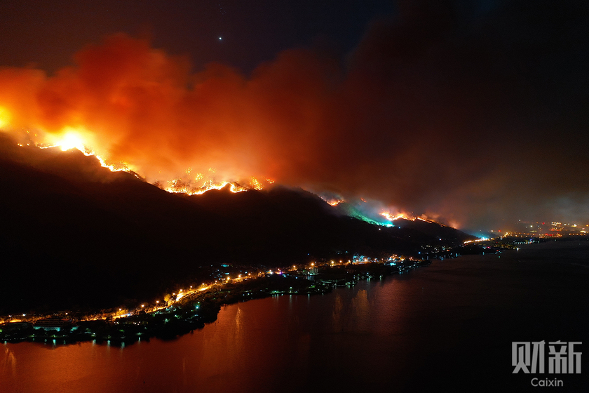 2020年3月31日,四川省凉山州西昌市,入夜后,复燃的森林山火火光冲天,呈蔓延之势,周边居民陆续疏散。