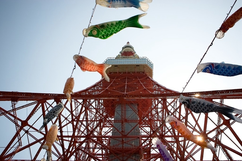 迎接日本儿童节 东京塔挂满鲤鱼旗