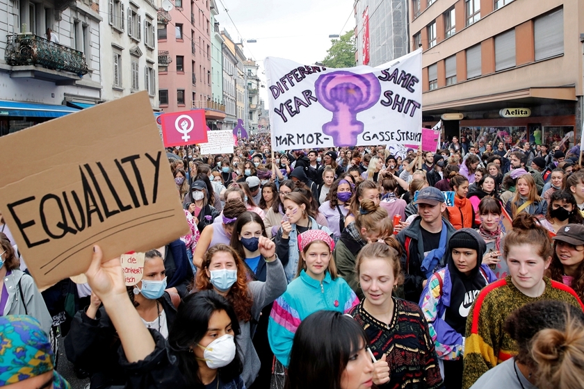 瑞士女性举行大规模抗议活动 呼吁平等对待女性