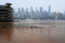 2020年7月2日,一艘船只通行重庆菜园坝长江大桥附近的水道。图/IC photo