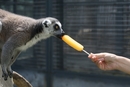 2020年8月10日,山东烟台,一只环尾狐猴在吃西瓜。图/人民视觉