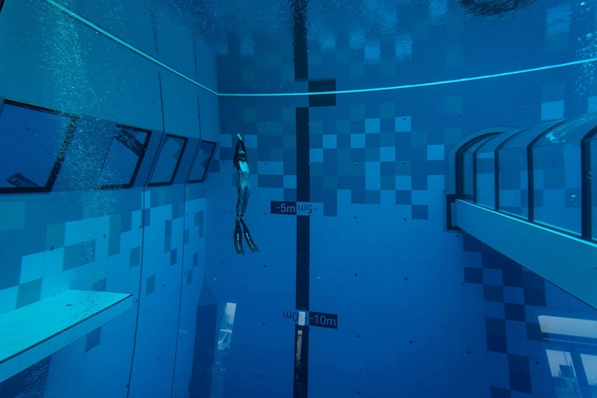 目前吉尼斯世界纪录保持者为意大利蒙泰格罗托泰尔梅一座42米深的水池。英国深达50米的“蓝渊”(Blue Abyss)水池则计划于2021年开幕。图/人民视觉