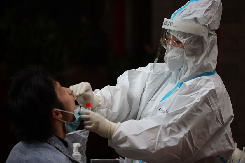 2020年12月3日,广东省深圳市罗湖区,工作人员为片区居民进行核酸检测。12月2日,深圳新增1例与香港输入病例关联的无症状感染者(杨某,居住于罗湖区笋岗村南区146栋),系12月1日确诊港籍跨境货车司机陈某的密切接触者。罗湖区于12月2日晚迅速组织对笋岗村南区全体居民开展核酸检测。4小时内完成人员样本采集2913份,环境样本采集27份,结果全部为阴性。图/人民视觉