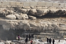 2020年12月6日,山西临汾吉县,游客在黄河壶口瀑布景区欣赏流凌冰挂景观。图/视觉中国