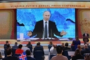 当地时间2020年12月17日,俄罗斯莫斯科,俄罗斯总统普京举行2020年度大型记者会。今年共有774名记者注册参加本次普京大型记者会,其中237名俄罗斯联邦级媒体和外国媒体记者在莫斯科国际贸易中心与普京进行视频连线。图/人民视觉