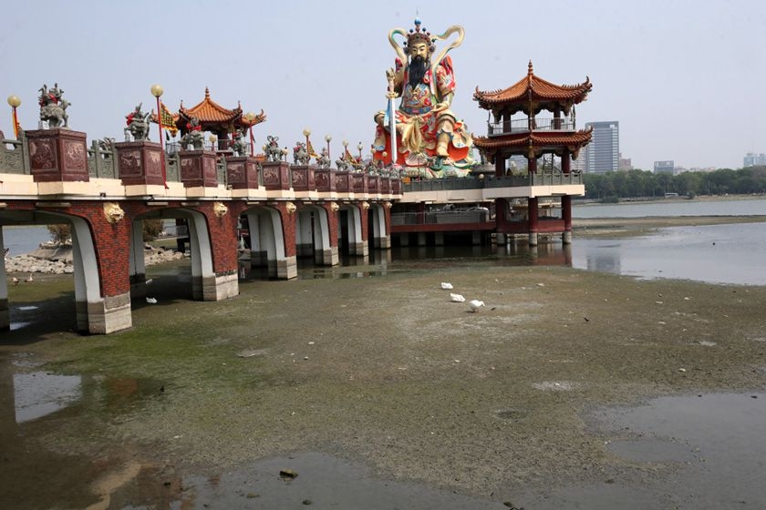 台湾旱情严峻 高雄莲池潭水位下降湖面裸露